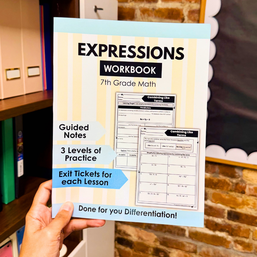 A complete 7th grade workbook series covering the full year with guided notes, scaffolded examples, and leveled practice in every lesson.