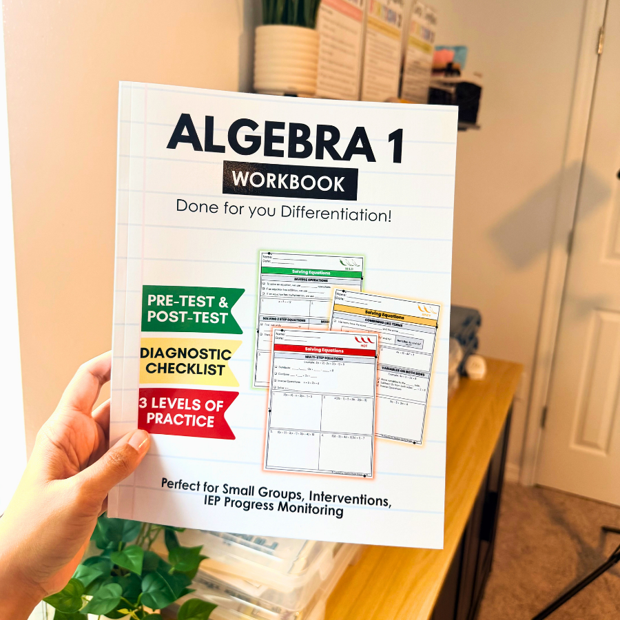 10 essential Algebra 1 skills with leveled practice designed for small group instruction, intervention blocks, and IEP math support.