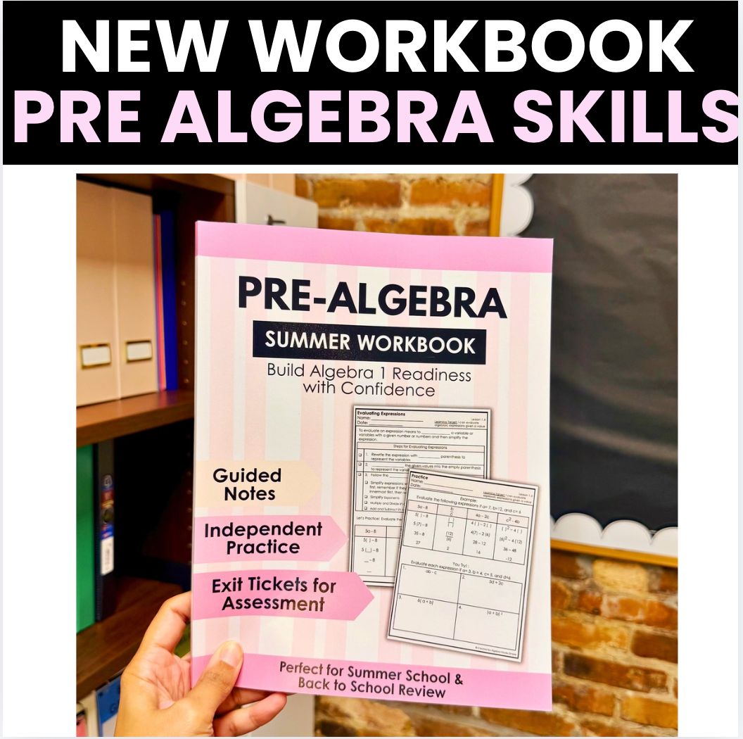 Review essential Middle School Math with guided notes, independent practice, exit tickets and even an exam. Perfect for Algebra 1 Prep, homeschooling families and Summer School